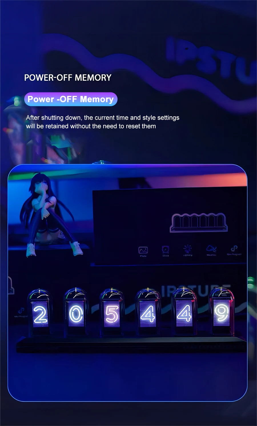 【IPS Tube Clock Support 12/24h Format】IPS Tube clock support to Wi-Fi time calibration and switch between 12 hours to 24 hours setting. A huge library of dial styles is at your disposal, or you can DIY the settings to your liking.